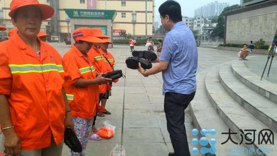 大河网讯 7月19日早上8点半,邮政储蓄银行周口分行在五一广场为川汇区环卫工人捐赠千余件上衣和千余双鞋子。周口市城管局副局长石生、川汇区爱卫会主任马淮海、邮储银行行长李刚等领导莅临现场。大河网、大河报、东方今报等媒体对此次活动进行现场采访。